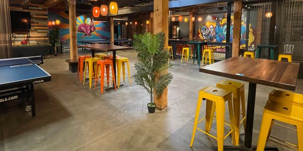 But ping pong isn't your only choice when it comes to Play! We've got corn hole, hammerschlagen (google it!), and arcade games!